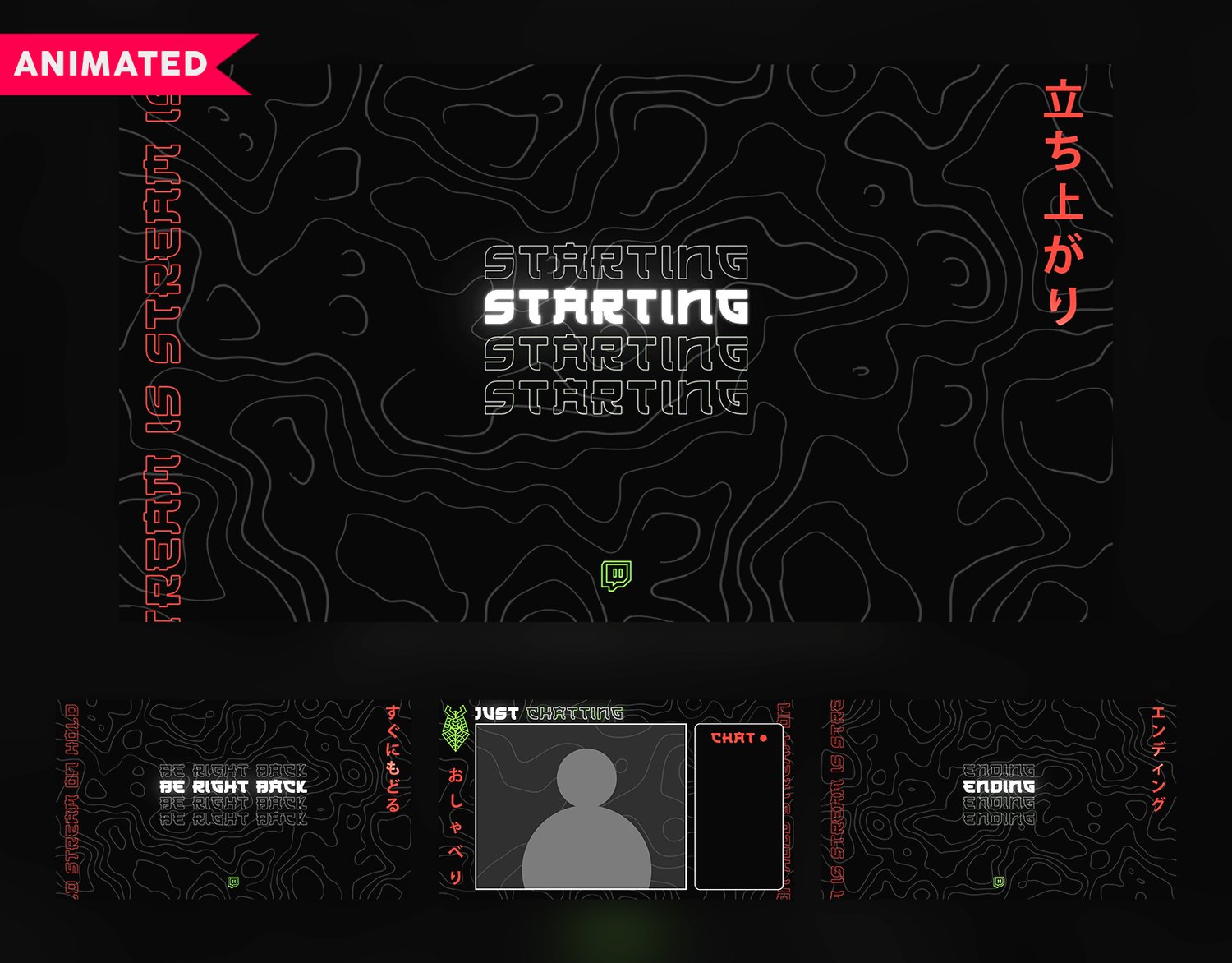 Triax is a stream overlay with which you enter the digital realm with the Japanese styled Tri-color overlay. Featuring a bold red, white and green color scheme, this overlay brings a futuristic and high-tech feel to your stream. With its Matrix-inspired design elements, the Triax overlay will give your stream a unique and cutting-edge look. Upgrade your streaming setup and immerse your viewers in the world of technology and Japanese culture with this overlay.