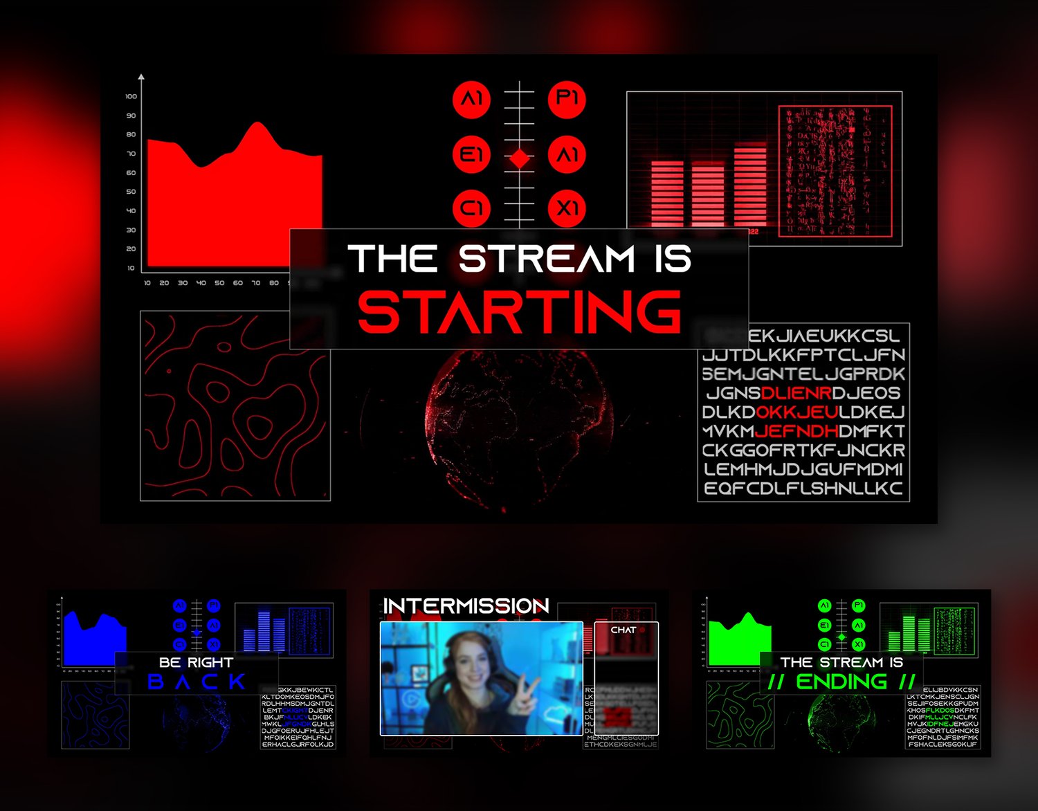 Xenic is an AI-inspired overlay offers three sleek color variants—Red, Green, and Blue—each infused with futuristic elements. With captivating animations and a digital aesthetic, Xenic transforms your stream into a visually stunning digital masterpiece, ensuring a captivating experience for your audience.